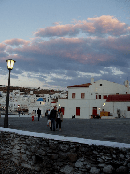 The sunset on Mykonos was one of the more obvious ones for us as we traveled around the Aegean. The reason was that we had been hoping to have some hours before nightfall to explore around the island, but after a late arrival and hurried disembarkation, we had a mere hour or so of sunset light to make our way around the island. That made me very aware of the sunset and I was usually checking to see how slowly the sun was setting. Did we have a little more time before the sunlight left us and we had to make our way around an unfamiliar place in the dark? One that had been designed by generations gone on before to thwart the encroachment of pirates by making the streets a maze of interconnectedness!