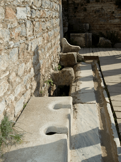Of course, any time one visits an ancient site and comes cross the public toilets, it’s a time for just having to sit down and relax a bit. The ancient Greek cities were masters at plumbing. These toilets are found in the central part of the old city of Ephesus. Nearby there are pipes dating from the time of Paul that are still capable of carrying water. They have lasted through numerous earthquakes and thousands of years of potential deterioration, but continue to be usable. The Greeks developed what were actually flush toilets. Beneath the “seating” was a water course which flushed away the sewage.
