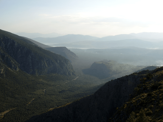 The photo here is what a bird’s eye view of the valley below Delphi might be. Mythology tells us that this is the place where the two eagles of Zeus met after flying from opposite ends of the earth. I think they might just have enjoyed the view and decided to stop here to see the sights. So Delphi became known as the navel of the earth.