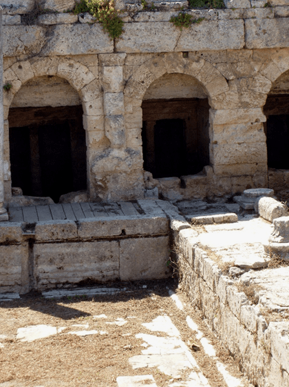 Pictured here is the fountain of Pirene in Corinth. It was said that this fountain was the result of Pirene, an ancient mythological figure, weeping for her children. She had a son named Cenchrias (his name has been given to one of the harbors of Corinth; his brother’s name is given to the other!). When Artremis accidentally killed Cenchrias, Pirene wept so long and so deeply that she became an eternally running spring of water. Her spring still runs to this day; in fact, we drank from a water fountain that is supplied by the water of Pirene’s spring.