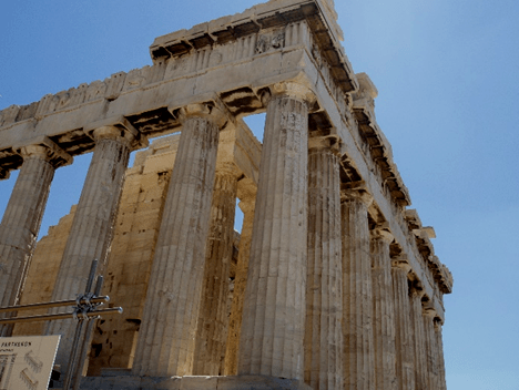 The Parthenon is the most important and characteristic monument of the ancient Greek civilization and still remains its international symbol. It was dedicated to Athena Parthenos, the patron goddess of Athens. It was built between 447 and 438 B.C. and its sculptural decoration was completed in 432 B.C. The construction of the monument was initiated by Pericles, then the king of the city of Athens, while the supervisor of the whole work was Pheidias, the famous Athenian sculptor. The story behind how Pericles could afford so monumental a project is fascinating to me. For it seems that as the Pan-Hellenic league pooled their funds in order to have enough money to face their foes, Pericles got them to store the cash in Athens. At which point, he undertook the erection of the Parthenon! He had taken account of whether he had enough cash to finish the tower and decided that with the aid of the other city states, he did have enough! So he built a famous landmark that has endured through earthquakes, wars, weather, and all the swinging of the pendulum of history to remain as a stunning work of beauty to this day. While it has deteriorated in many ways and been badly damaged in war and by theft, the Parthenon is a thing of beauty to savor.