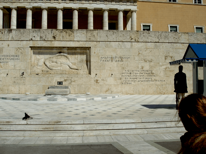 In many nations the task of guarding the tomb of the Unknown Soldier is one entrusted to a few people whose lives will revolve around doing that job and nothing else. So too in Greece, here at the tomb of the Unknown Soldier the nation is represented by a group of young men who stand guard day and night. They do not allow any distractions to keep them from their appointed task. I have to admit that I wondered how they could keep their focus so well that the antics of those who sought to take pictures next to them did not break their concentration for a moment.