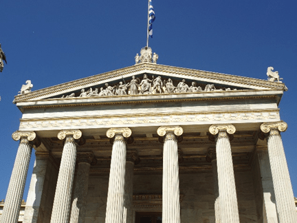 As Paul made his way around Athens he became more and more convinced that he was among a people who were very religious. It was not difficult to discover what it was that made him think that. This is a photo of one the Athens University buildings that was constructed in the 1800’s in the “classical style.” Part of what that means is that it includes a pediment (the triangular area above the columns) where a depiction of the Greek pantheon is to be found. The twelve gods of the pantheon are arrayed in various poses to depict their place in the scheme of things. The depictions of these gods were found in a great many places around Athens as Paul made his way around the city as a tourist. The most important of the gods would be found in the center and the lesser ones would spread out from the center to either end.