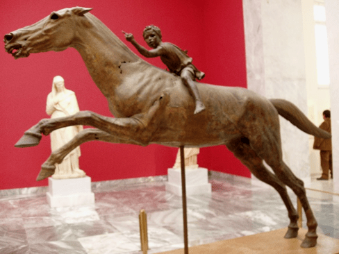 I know my pastor friends would tell me that I am making quite a stretch on this one, but I couldn’t help but think of the song of Moses and Israel when I heard the story of the jockey. This bronze statue of a horse and rider was found in the depths of the sea. The statue is known officially, I believe, as the bronze jockey of Artemision because it was found off the coast of that city. He likely was holding the reins in his left hand and a whip in his right hand. The date given by historians for its casting is somewhere about 140 B.C. Since it was lost at sea for centuries, it was protected from destruction.